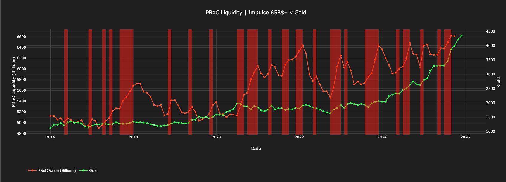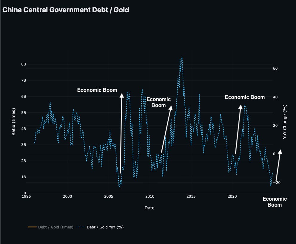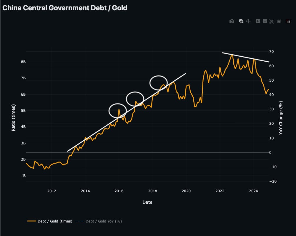 Now looking at the Chinese side (main catalyst), first we go at Debt/Gold YoY (%)